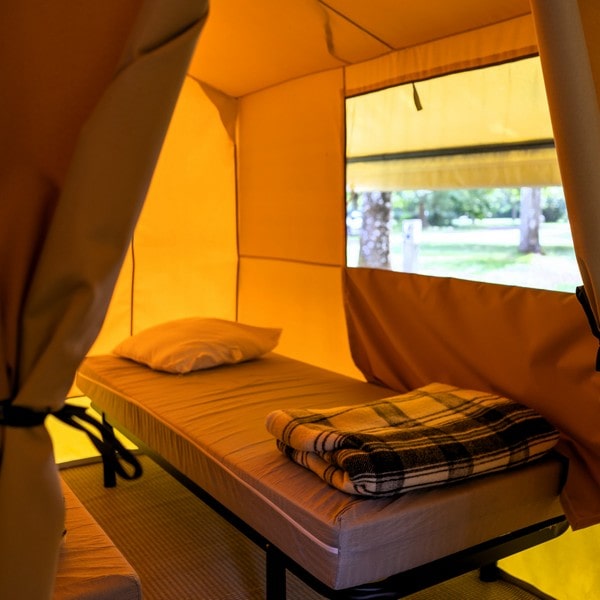 Want to rediscover the thrill of adventure without sacrificing comfort? The Ponza tent is for you! Sleeping up to 4 people, it’s perfect for a getaway with friends or family. Spacious, bright and well-equipped, it offers an authentic camping experience with a touch of cosiness. All just a stone’s throw from the campsite facilities!